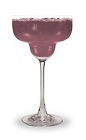 The Bit o Berry Rita is a purple cocktail made from Pucker Berry Fusion schnapps, raspberry schnapps, tequila, sour mix and triple sec, and served in a margarita glass.