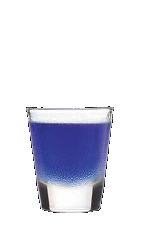 The Black and Blue shot recipe can nurse you back to health after a bruising day at the office. A blue colored drink made from Three Olives cherry vodka, raspberry liqueur and blue curacao, and served in a chilled shot glass.