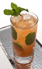 - Muddle mint and simple syrup in the bottom of a highball glass.