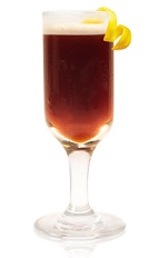 The Sweet Jane is a brown cocktail made from Patron XO Cafe liqueur, tea and lemon juice, and served in a wine glass.