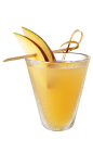 The Tuscan Spice is a spicy yellow shot made from Tuaca vanilla citrus liqueur, mango nectar, lemon juice, cayenne pepper and mango slices, and served in a chilled shot glass.