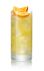 The Main Squeeze drink is made from Stoli Ohranj orange vodka, orange juice and club soda, and served in a highball glass.